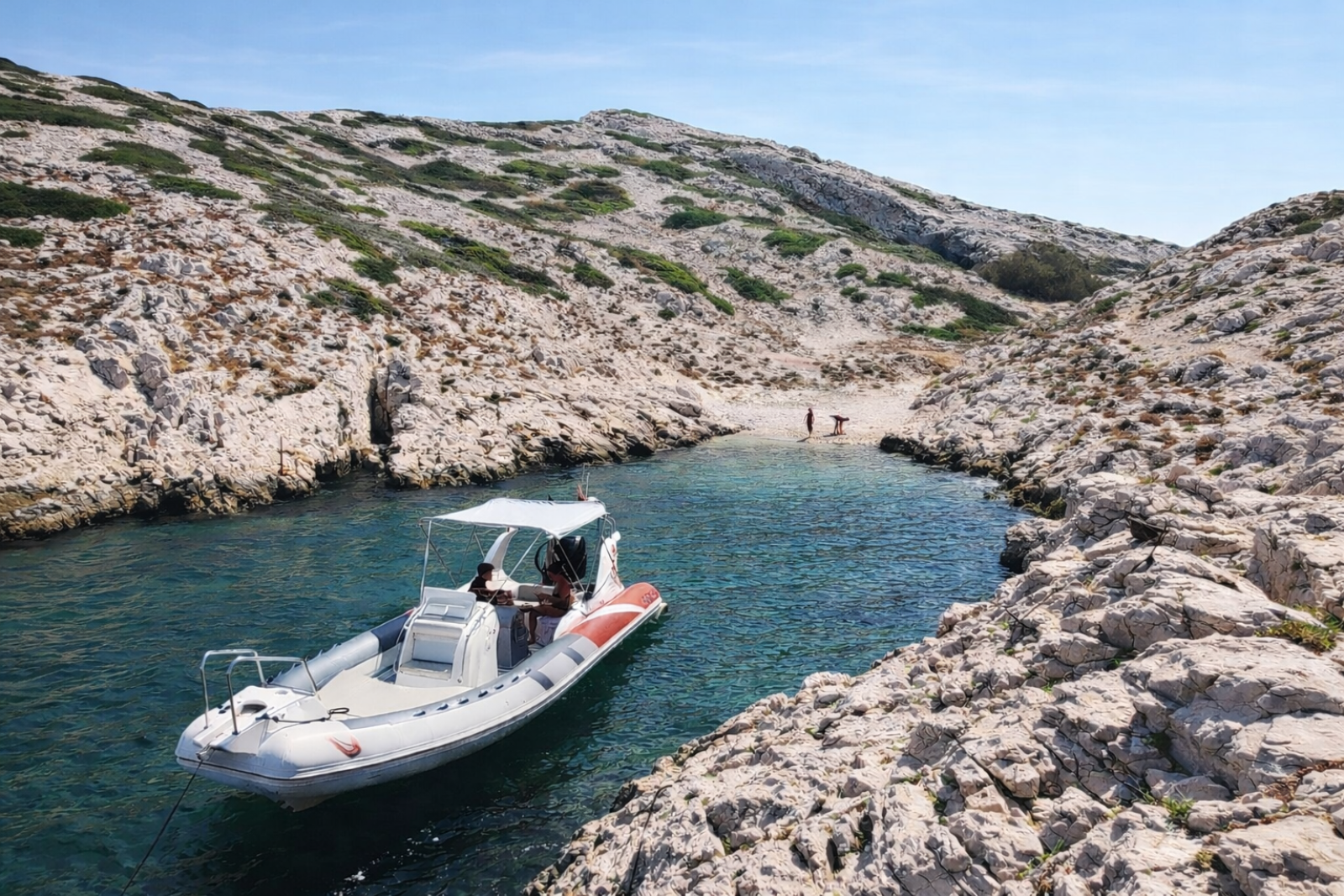 Throughout the day, enjoy swimming and snorkeling stops in crystal-clear Mediterranean waters, with ample time to relax under the sun. You are welcome to bring a picnic to enjoy on board, or we can arrange a stop at a seaside restaurant for lunch. With a professional skipper adapting the itinerary to weather conditions and your preferences, each moment is designed for a relaxed and exclusive exploration of the Calanques National Park.