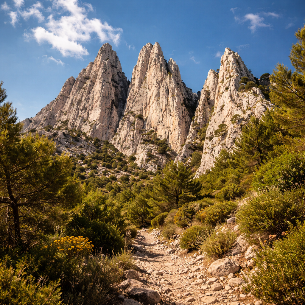 Rising above the picturesque village of Gigondas, the Dentelles de Montmirail form a striking limestone range that dominates the surrounding landscape. From its elevated paths, the eye drifts across an endless sea of Grenache and Syrah vines, sculpted by generations of winemakers. This dramatic setting, where rugged geology meets refined viticulture, offers an unforgettable introduction to one of Provence’s most distinctive terroirs.