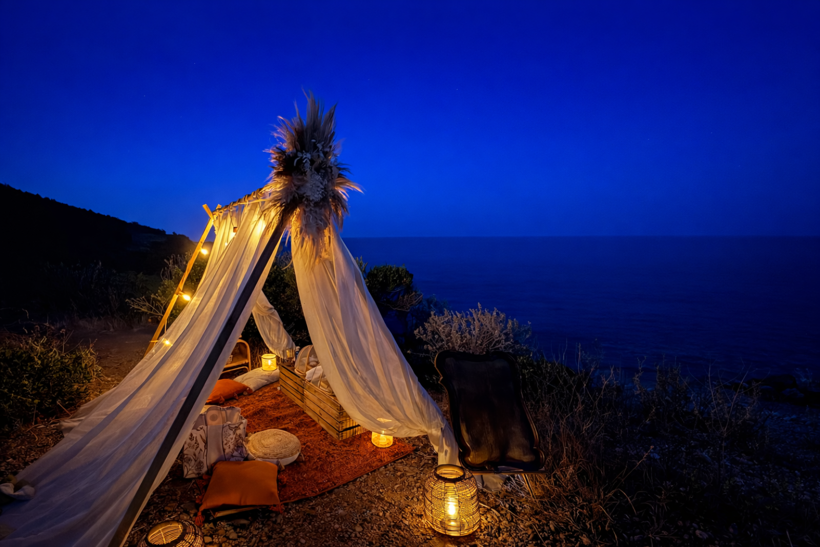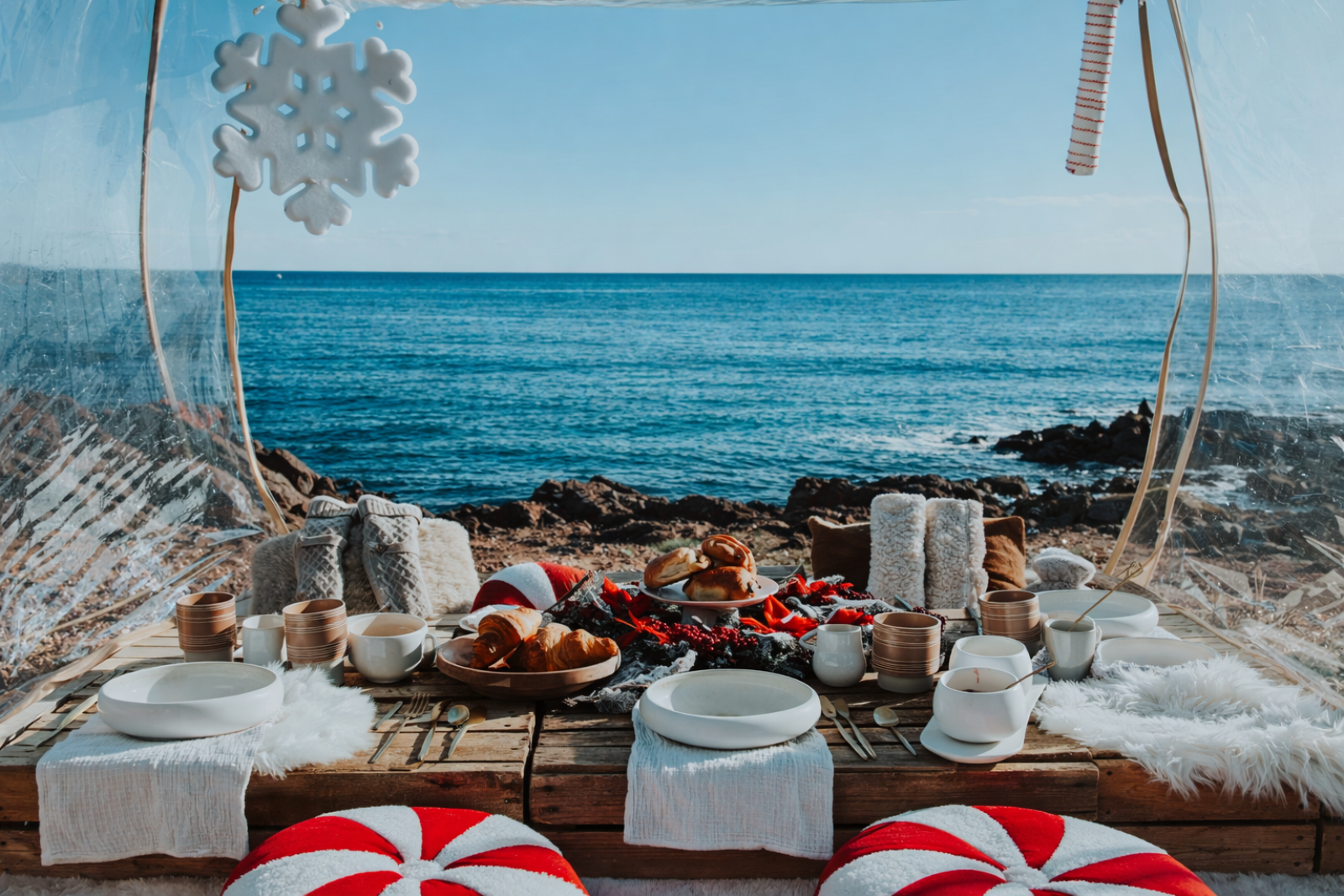 This immersive outdoor picnic concept offers two distinct experiences designed to combine nature, comfort, and seasonal dining. Set in carefully selected locations such as vineyards, seaside landscapes, or mountain viewpoints, each picnic takes place in a beautifully styled tipi or transparent bubble, creating an intimate and elegant atmosphere in harmony with the surroundings.