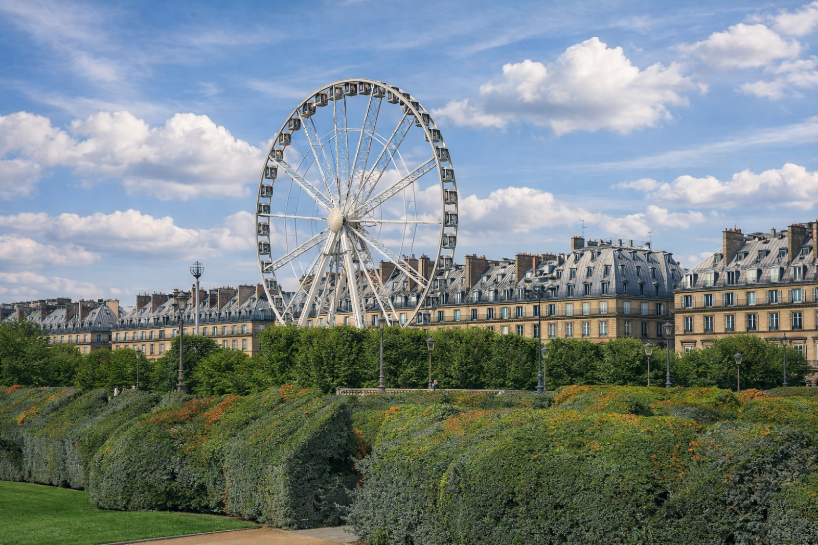 The walk begins at the Jardin des Tuileries, stretching between the Louvre and Place de la Concorde. Created in the 16th century for Catherine de’ Medici and later redesigned by landscape architect André Le Nôtre, it became one of the finest examples of French formal garden design, with long tree-lined alleys, ornamental ponds, sculptures, and carefully planned perspectives. For centuries, it has served as a place where Parisians and visitors alike gather to stroll, relax, and admire the city’s grand historical setting.