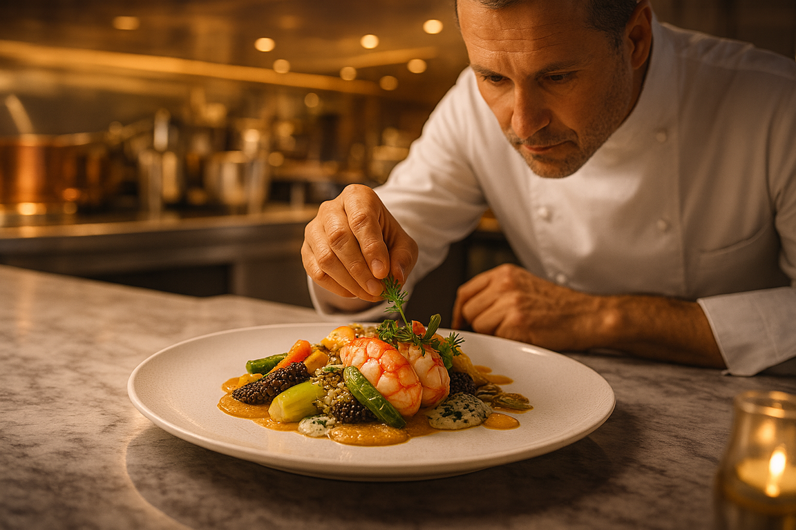 Onboard, indulge in the refined creations of Chef Jean-Philippe Berens, whose modern French cuisine highlights the freshest ingredients delivered daily. Every dish is prepared with precision, transforming seasonal flavors and classic techniques into contemporary culinary art. The beautifully balanced plates, paired with attentive and gracious service, ensure a dining experience that embodies the very essence of Parisian sophistication.