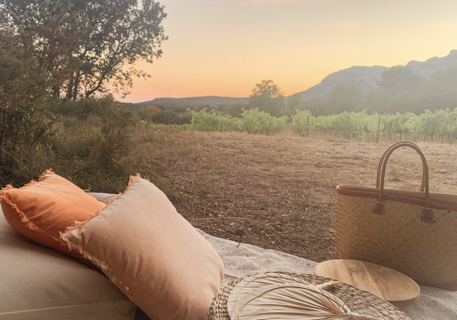 Nestled amid vineyards, we offer an exclusive setting with a stunning panorama for a picnic lunch featuring exceptional food and ingredients at the base of Sainte-Victoire, providing the perfect backdrop for a leisurely and special dining experience.